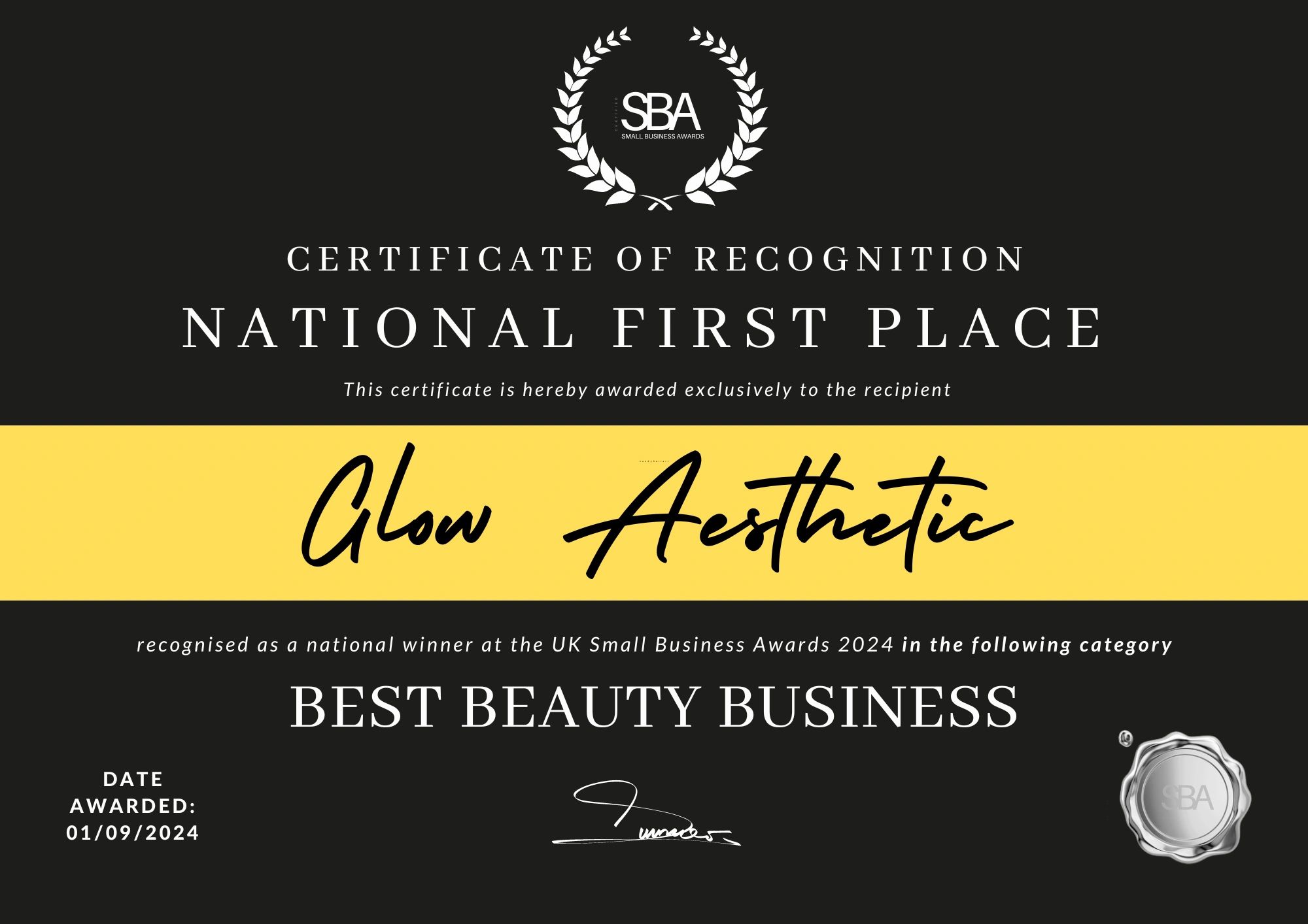 The UK Small Business Awards 2024 rewarded us with National FIRST Place in the following category: Best Beauty Business